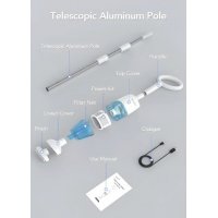 Телескопическая опора в комплекте: этот пылесос поставляется с телескопической опорой длиной 150 см, в то время как другие изделия ее не имеют. Два вида очистки - ручной и с телескопическим шестом - позволяют чистить спа-салон, ванну и гидромассажную ванну по своему усмотрению. Примечание: Если у вас большой бассейн, пожалуйста, подключите стандартный шест подходящей длины (не входит в комплект).