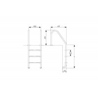 Предназначена для удобного спуска и подъема из воды бассейна для монтажа на широкий борт. Она изготовлена из нержавеющей стали AISI-304. Крепится лестница к полу с помощью закладных стаканов (поставляются в комплекте). Для крепления в отделанную поверхность дополнительно приобретаются Адаптеры для лестницы. Внизу лестница упирается в стену бассейна через резиновые заглушки. Ступени лестницы комплектуются пластиковыми антискользящими накладками.