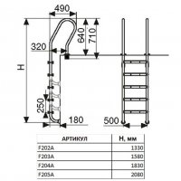 Лестницы для бассейнов изготавливаются из полированной нержавеющей стали AISI-304, отличающейся высокой сопротивляемостью коррозии и окислению. Ступени лестницы одинарные с антискользящими накладками. Соответствуют международным стандартам. Для удобства монтажа лестницы снабжены закладными деталями. Диаметр трубы поручней 42 мм.