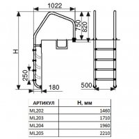 Лестницы для бассейнов изготавливаются из полированной нержавеющей стали AISI-304, отличающейся высокой сопротивляемостью коррозии и окислению. Ступени лестницы одинарные с антискользящими накладками. Соответствуют международным стандартам. Для удобства монтажа лестницы снабжены закладными деталями. Диметр трубы поручней 42 мм..