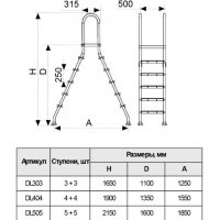Лестницы двухсторонние серии DL для сборных бассейнов, изготавливаются из нержавеющей стали AISI-304.