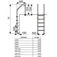 Лестницы для бассейнов изготавливаются из полированной нержавеющей стали AISI-316, отличающейся высокой сопротивляемостью коррозии и окислению. Ступени лестницы одинарные с антискользящими накладками. Соответствуют международным стандартам. Для удобства монтажа лестницы снабжены закладными деталями. Диметр трубы поручней 42 мм..