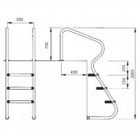 Ширина лестницы 500 мм. Соответствует европейским стандартам EN 13451-1 и EN 13451-2. Поручни из полированной нержавеющей стали 43 мм в диаметре. Поставляется с анкерными креплениями и заземлением. С двойными ступеньками безопасности и увеличенной общей высотой в соответствии со стандартом BS EN 13451. Поручни и нескользящие ступеньки из полированной нержавеющей стали AISI-316.