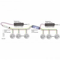 Управление 4-х проводными RGB светильниками: пульт Drv360P216D4, 12 В DC, 16 программ, общее количество цветовых вариаций 32.