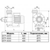 Насос BTP-2200/STP-2200 без префильтра 48,9м³/час(8м), 1ф/220В, 2,8/2,2 кВт