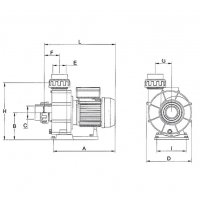Центробежный насос для СПА, противотоков и аттракционов. Корпус насоса сделан из полипропилена, усиленного стеклопластиком, устойчив к химическим продуктам, используемых в бассейне гарантирует долгосрочную и устойчивую работу. Крыльчатка изготовлена из норила. Сальник насоса из керамики и графита, а его вал - из нержавеющей стали AISI 316L. Насос укомплектован малошумным мотором 2850 об/мин, с защитой IP-55. Напряжение питания: 230В-50Гц при одной фазе, и 230/400В-50Гц для трех фаз. Насос доступен в версиях с мощностью от 1,5 л.с. до 4,5 л.с. с клеевым соединением. Соединения на всасывание и возврат. Соединительные втулки поставляются вместе с насосом. Диаметр всасывающего отверстия на возврат 63 мм.