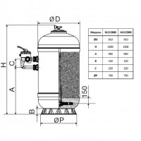 Фильтр д.900мм (бок. подсоед. 63мм) Emaux SDB900-1.0 (с 6-ти поз. вентилем 2'') 88013839