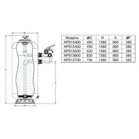 Фильтр HPS13600, шпул. навивки, d.600мм.,10м³/ч, выс загр.0,8м, бок.подкл. 1½", без вентиля