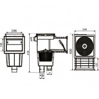 Скиммеры PA00249 выполнены из белого ABS-пластика. Размеры подключения 1½" внутренний, 2" наружный. Дополнительно заглушенное отверстие Ø50 мм внутренний, переливной патрубок Ø40 мм. Крышка квадратная. PA00249.1V выполнен для бассейна из бетона с лайнером, в комплект входит декоративная рамка. Крепление прижимного фланца у модели PA00249.1V осуществляется с помощью винтов в резьбовые латунные втулки. Рекомендованное применение: 1 скиммер на 25 м² водной поверхности.